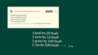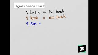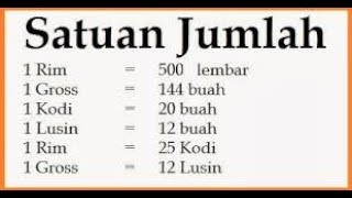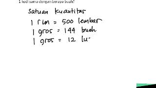 Satuan Kuantitas (kodi, lusin, gros, rim, buah, lembar) Video ini membahas tentang cara mengkonversi antara satuan kuantitas (kodi, lusin, gros, rim, buah) ke ...